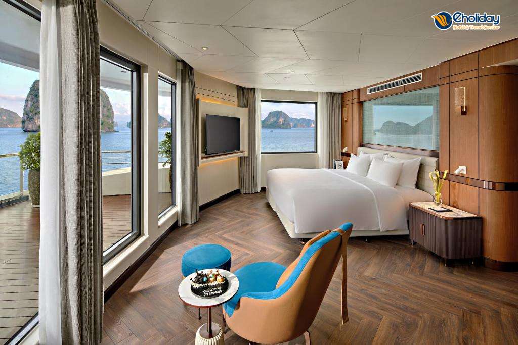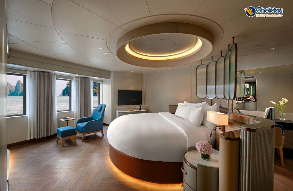 - Owner’s Suite (100–150 m² + sundeck riêng 200 m²): Không gian sang trọng và riêng tư bậc nhất, sundeck rộng lớn với tầm nhìn toàn cảnh vịnh, thiết kế độc đáo và tinh tế, là lựa chọn hoàn hảo cho du khách tìm kiếm trải nghiệm nghỉ dưỡng đẳng cấp.