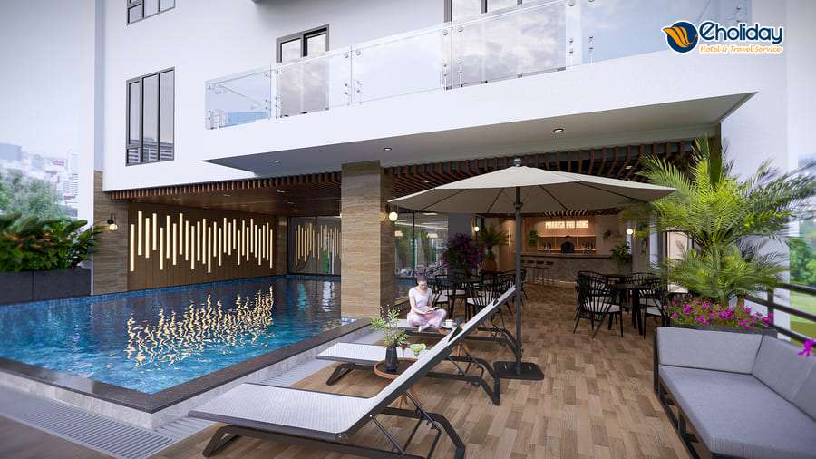 "Khách sạn mới khai trương, ngay bãi tắm D, có cả bể bơi siêu đẹp luôn"