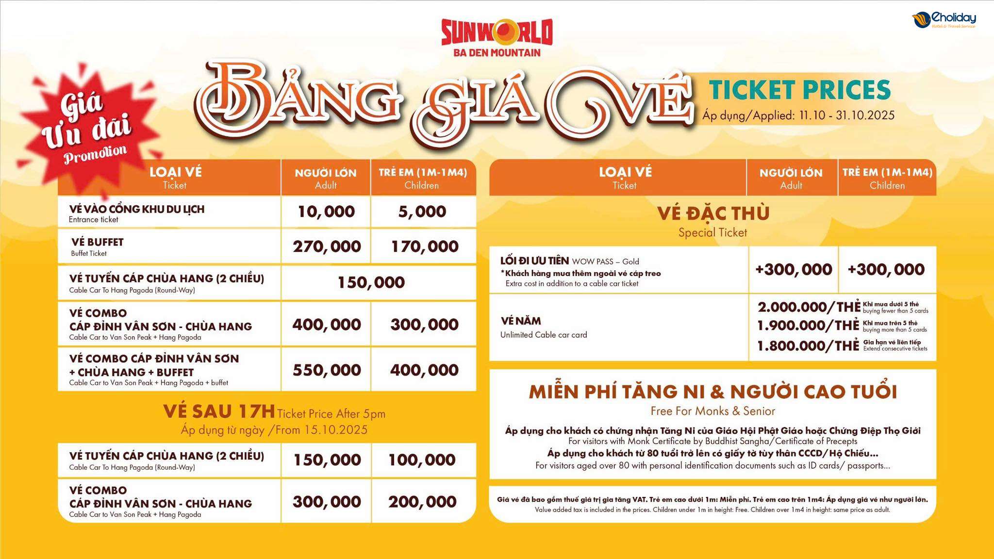 - Vé vào cổng khu du lịch Núi Bà Đen Tây Ninh (vui lòng mua trực tiếp tại cổng)