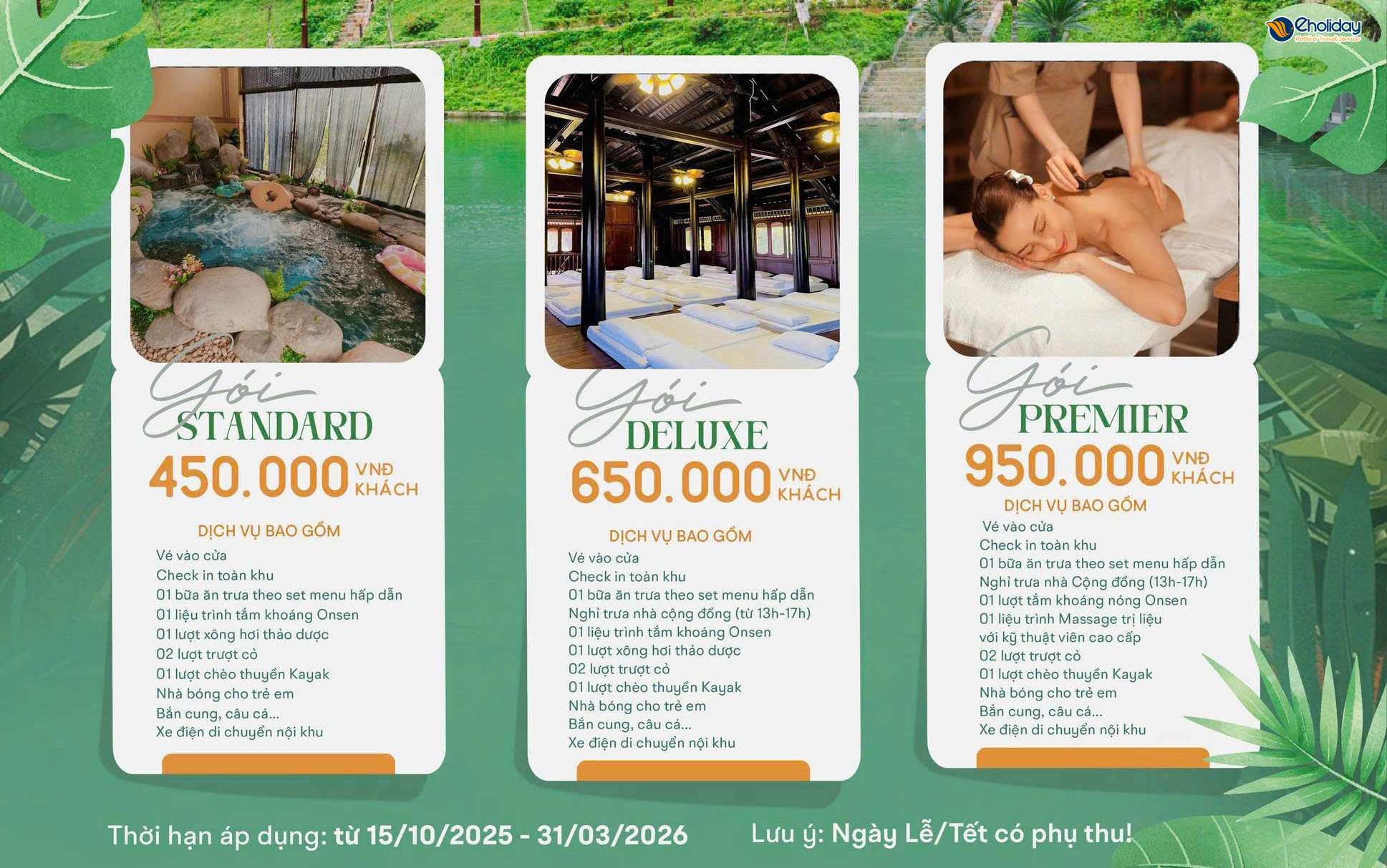 Gói Tắm khoáng Onsen + Xông hơi + Ăn trưa + Nghỉ trưa + Vui chơi